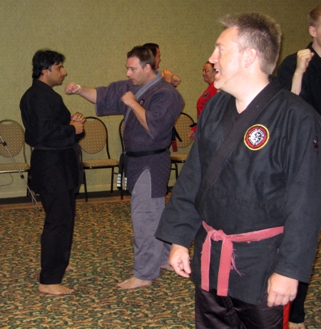 The crowd looks on while techniques are being practiced.
