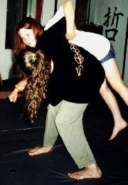 Above (R) Lynda Watson performs a hip throw on Emily McHugh.