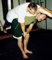 Above (L) Neil Westlake throws Fred Renkewitz.