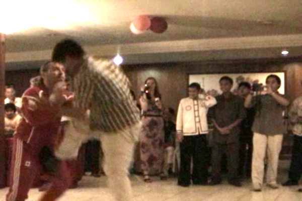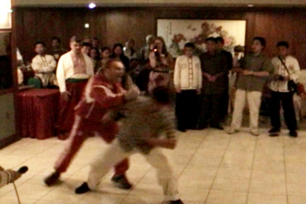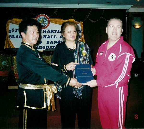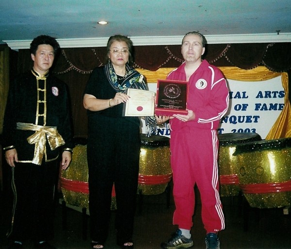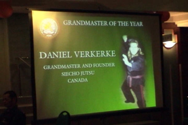 The awards presentation proceeded with speeches from various dignitaries. Professor Verkerke received "Grandmaster of the Year" for his work in teaching the Martial Art of Canada in Europe, USA, and Asia in 2003. After the presentations, International Grandmasters in attendance conducted demonstrations for the crowds. Grandmaster Verkerke demonstrated both re-direction of energy as well as total resistance. Mr. Verkerke's demo was well received as many of the Masters and spectators gathered around to have their pictures taken with him.