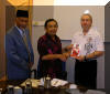 ![]() Pictured left: GM. Verkerke at press conference and slide show presentation. Pictured right: Silat Kalam Officials pose with GM. Verkerke |