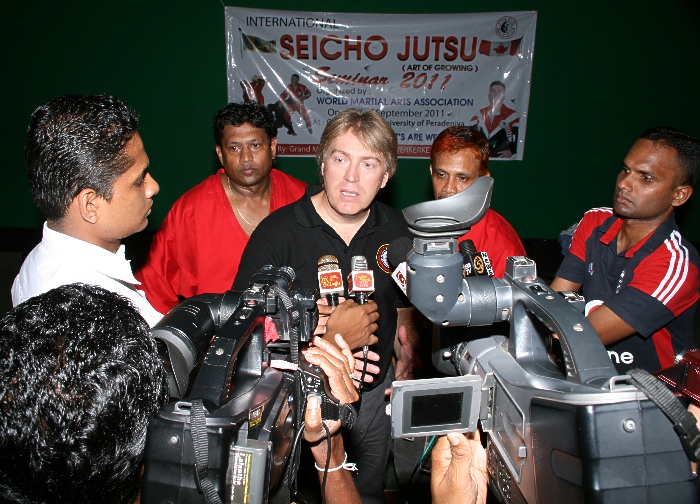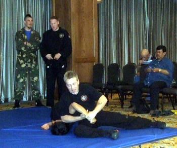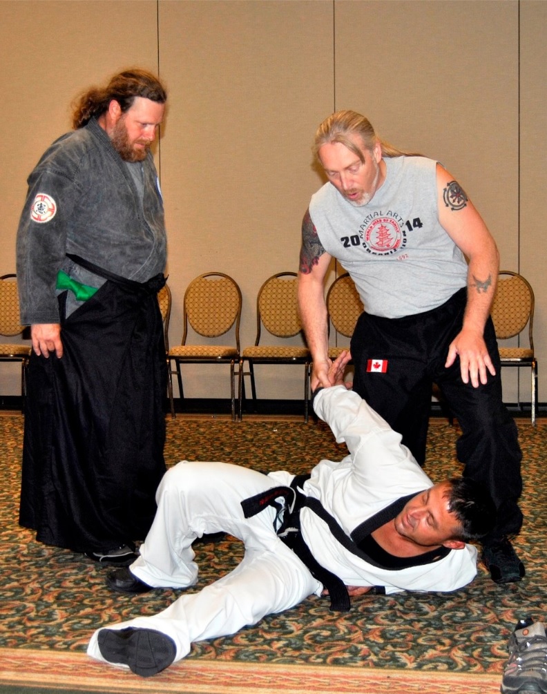 ![]() (above) GM. Verkerke interviews Royce Gracie for Grandmasters Martial Art Magazine. Published out of Alberta Canada. (right) GM. Verkerke (center) with participants of the Advanced arm lock course. |