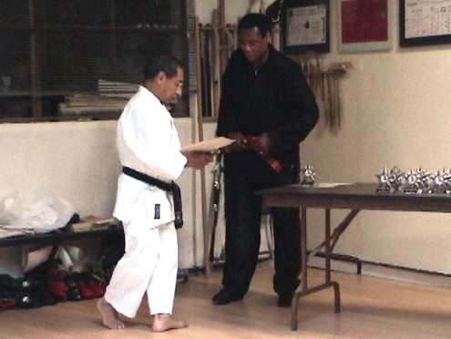 Seicho Jutsu Black Belts receiving awards from C.O.M. President Dr. Dan R.