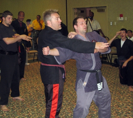 demonstrates advanced Black Belt self defense demonstrations and