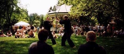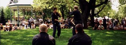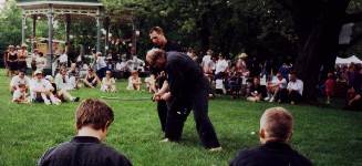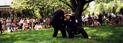 Shihan Larry Myyra (left) with Shidoshi Jaque Morin during 1997 demo