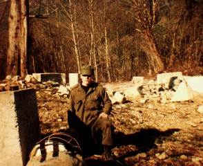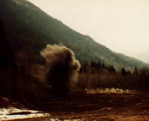 In 1982 Soke Verkerke became an Aslt. Pioneer Arming and disarming explosives became his duty. These pictures demonstrate what 4 pounds of C4 will do to a large rock.By the way the C4 is set as an open charge which is meant to minimize the amount of destruction. |