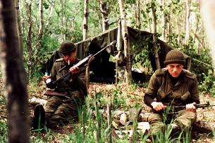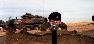 Soke Verkerke (right) in the field cleaning his FNC1 rifle during a military exercise 1981