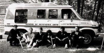 Demo team taking a rest after practicing all day. The Van in the background was Soke Verkerke's touring van.
