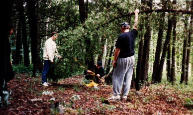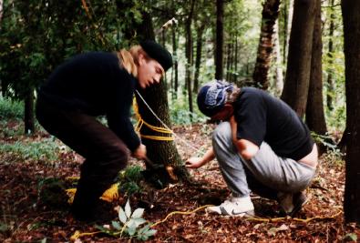 Setting a tree snare at the Festival camp 1988