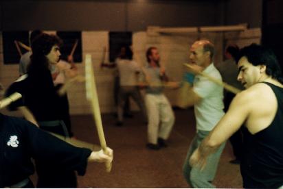Students training at the Kali seminar, held at the Seicho Jutsu Main Street Dojo 1988