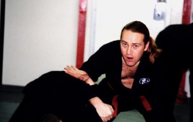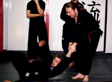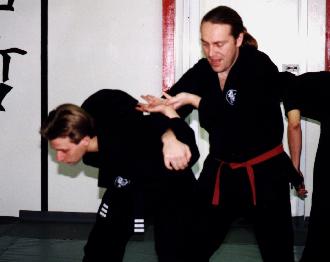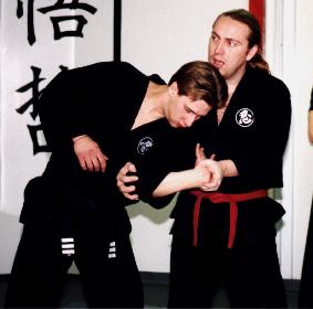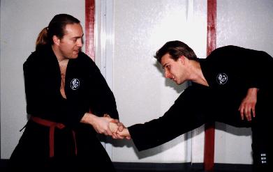 Soke Verkerke (right) demonstrates with Shihan Myyra