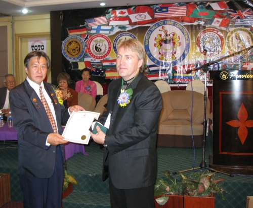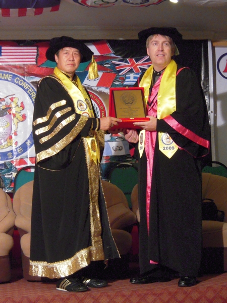| GM Daniel Verkerke received the Living Legend award. All Doctorate degree holders wear the robe representing their degree. The color of the robe represents GM Verkerke Doctorate degree which he received in 2005. The different hats also represent the degrees as well. |