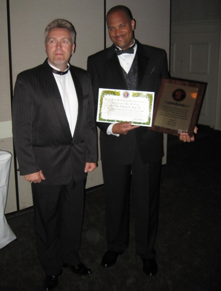 Shihan Larry Myyra displays his plaque after receiving Master