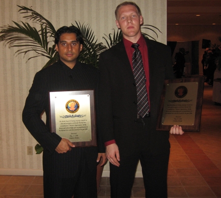 Daniel Verkerke congratulates Kapley Judge for his "Outstanding