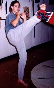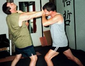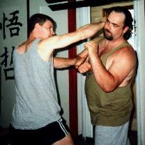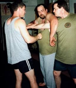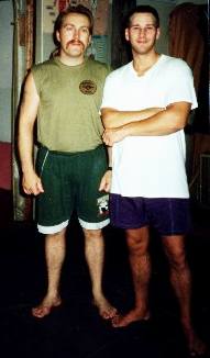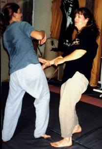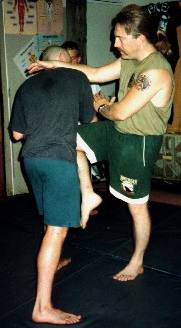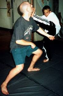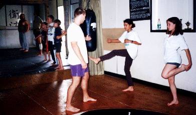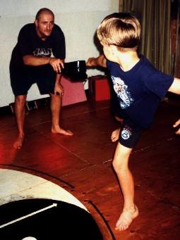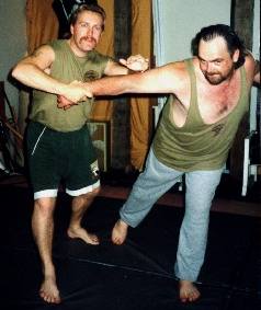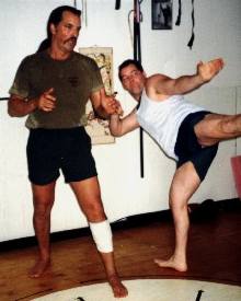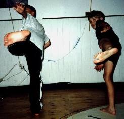Tony Reardon (R) demonstrating a side kick for Neil Westlake.