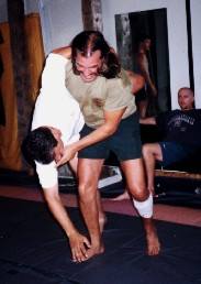 Above (R) Lynda Watson performs a hip throw on Emily McHugh.