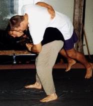 Daniel Verkerke demonstrates another variation of a hip throw with Larry Myyra. |