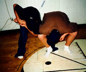 Daniel Verkerke Jr. positioning himself to apply the arm bar.