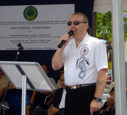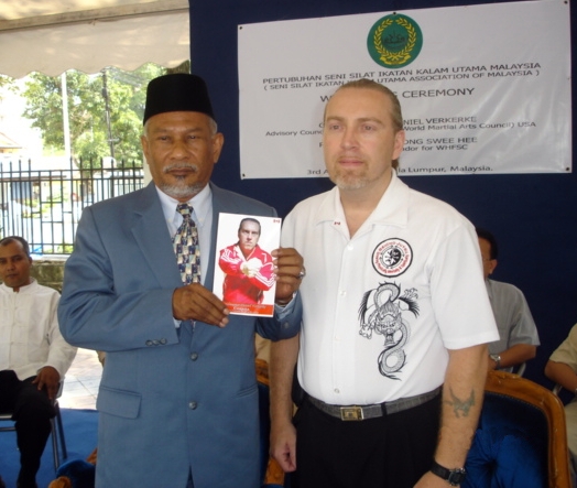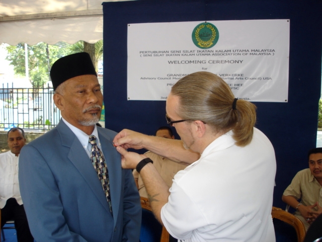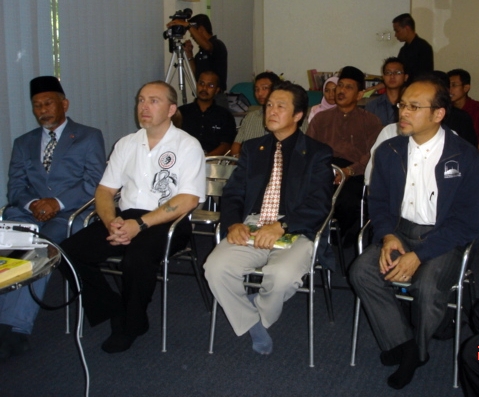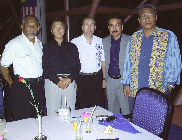 | GM. Daniel Verkerke was taken care of very well while in the Capital City Kuala Lumpur. A car and driver where provided compliments of Dr. Zahalan Man, Grandmaster of Pertuhan Seni Silat Ikatan Kalam Utama Malaysia.. Upon arrival to KL. GM. Verkerke was greeted at the airport by Prof. Dr. Steve Rajan who is Vice President - International Affairs, and was then taken on a tour of the City. Later on that evening GM. Verkerke was guest of honor at an 8 course meal hosted by Dato' Hj. Mohd Admin Bin Pipet |